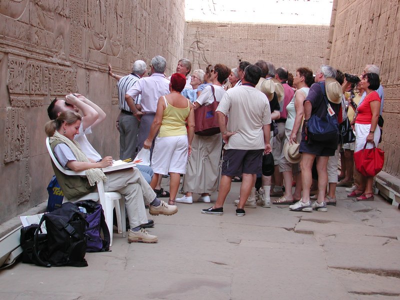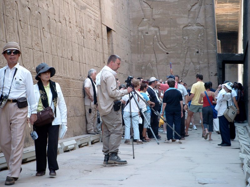 After the French egyptologist Auguste Mariette (1821-1881) had cleared the Edfu temple of sand and debris (until 1867), research on the texts and the decoration of the temple walls started immediately. Soon afterwards, some major texts were published by various scholars (E. von Bergmann, H. Brugsch, J. Dümichen, E. Naville, K. Piehl and J. de Rougé). A high rate of mistakes, or rather, the inaccuracy of these early copies is due to the bad working conditions of that time: Early egyptologists had to cope with dirt from bat excrements and wasps’ nests, bad accomodation and the lack of technical equipment and interior lighting.
