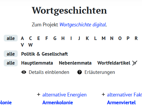 Wir haben auf der Homepage des Zentrums für digitale Lexikographie der deutschen Sprache (ZDL) neue Wortgeschichten aus dem Themenfeld "Politik und Gesellschaft" bereitgestellt.