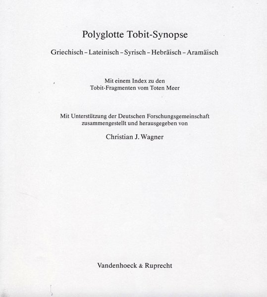 C. J. Wagner, Polyglotte Tobit-Synopse. Griechisch-Lateinisch-Syrisch-Hebräisch-Aramäisch, Göttingen 2003.