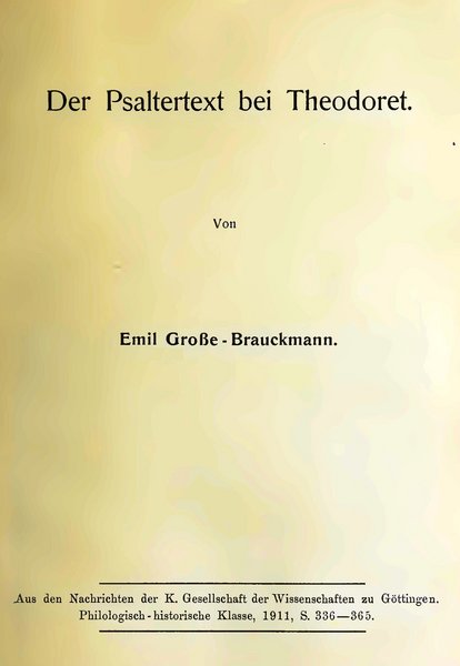 A. Aejmelaeus/U. Quast (Hg.), Der Septuaginta-Psalter und seine Tochterübersetzungen. Symposium in Göttingen 1997, Göttingen 2000.