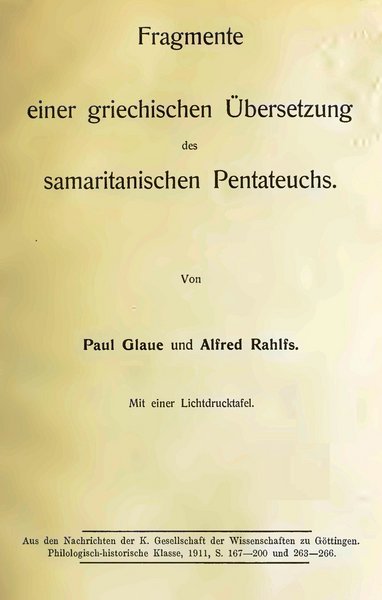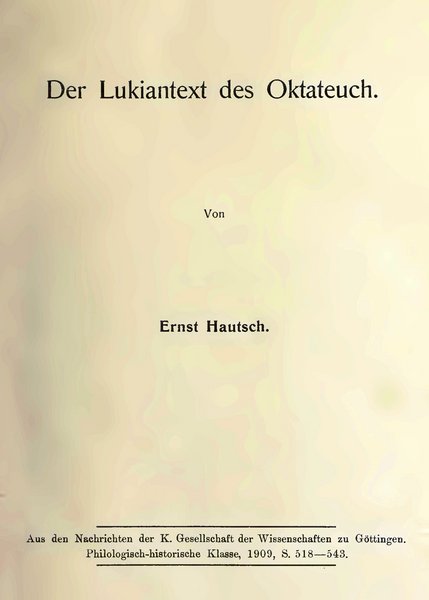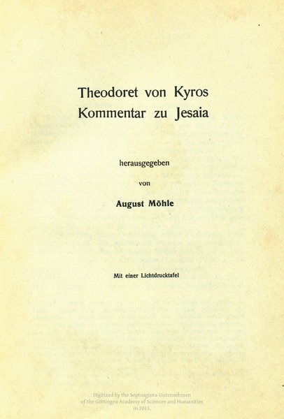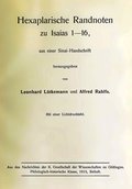L. Lütkemann/A. Rahlfs, Hexaplarische Randnoten zu Isaias 1–16, aus einer Sinai-Handschrift, Berlin 1915.