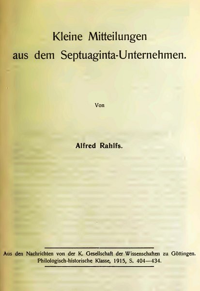 R. G. Kratz/B. Neuschäfer (Hg.), Die Göttinger Septuaginta. Ein editorisches Jahrhundertprojekt, Berlin/Boston 2013.