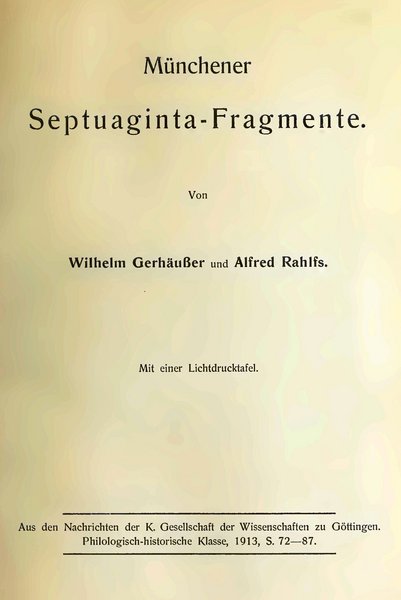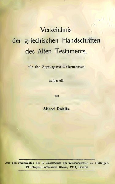 A. Rahlfs, Über einige alttestamentliche Handschriften des Abessinierklosters S. Stefano zu Rom, Berlin 1918.