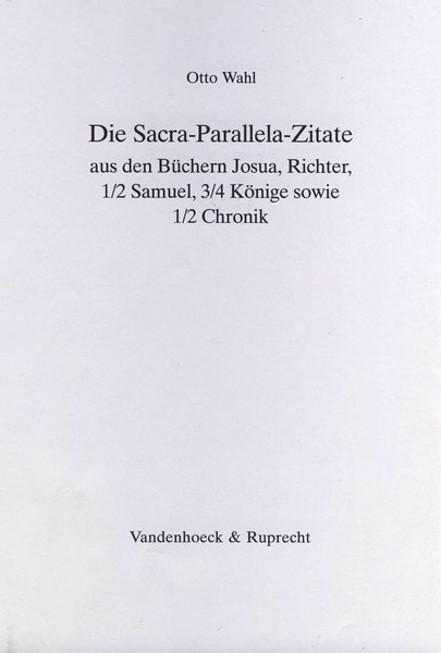 O. Wahl, Die Sacra-Parallela-Zitate aus den Büchern Josua, Richter, 1/2 Samuel, 3/4 Könige sowie 1/2 Chronik, Göttingen 2004.