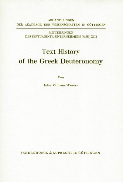 J. W. Wevers/D. Fraenkel, Studies in the Text Histories of Deuteronomy and Ezekiel, Göttingen 2003.