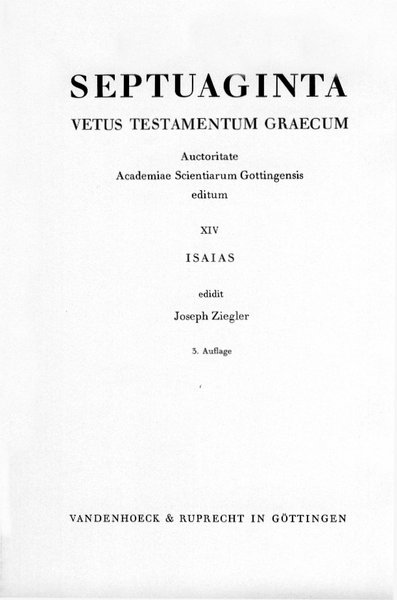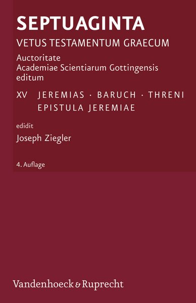 Ieremias, Baruch, Threni, Epistula Ieremiae, ed. Joseph Ziegler, Göttingen (Vandenhoeck & Ruprecht) 1957, 4. Auflage 2013.