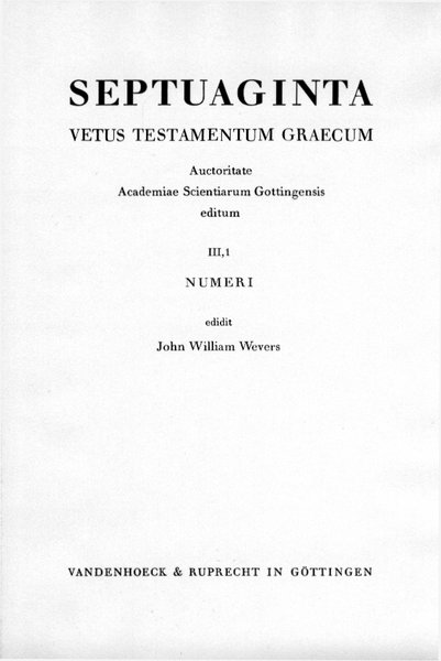 Numeri, ed. John William Wevers, adiuvante Udo Quast, Göttingen (Vandenhoeck & Ruprecht) 1982.
