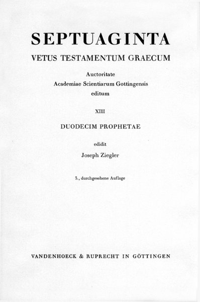 Duodecim Prophetae, ed. Joseph Ziegler, Göttingen (Vandenhoeck & Ruprecht) 1943, 4., völlig neu bearbeitete Auflage, bearbeitet von Felix Albrecht (in Vorbereitung).