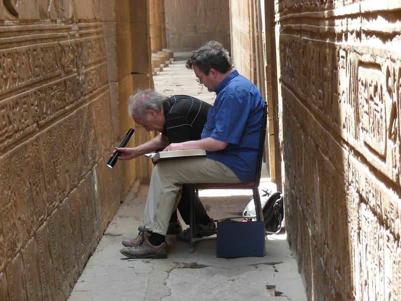 Dieter Kurth and Martin von Falck collating at the pronaos